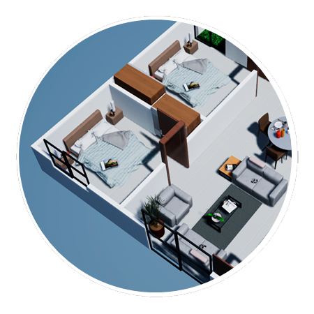 Las imagenes son representativas y pueden cambiar durante el proyecto, materiales de construcción, acabados, equipamiento, marcas, tonos y colores pueden diferir de la ilustración. (renders, fotografías, planos) son ilustrativas y no contractuales.
