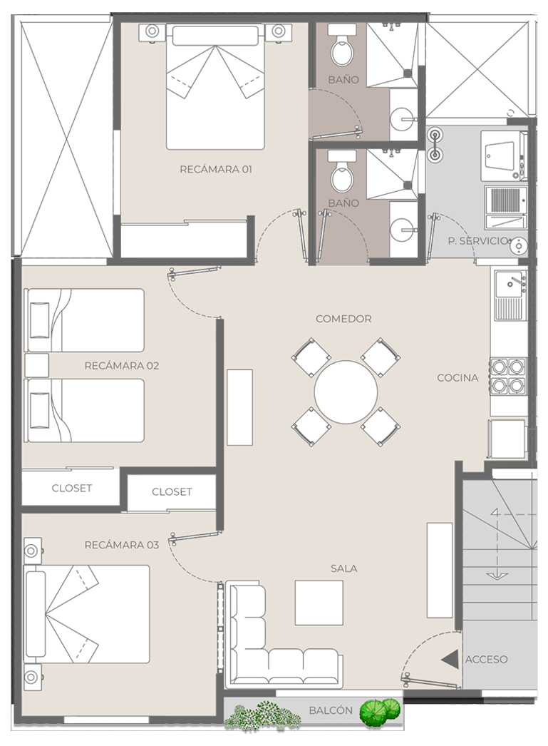 Las áreas verdes, las privadas con acceso controlado y los espacios comunes fomentan un ambiente seguro, armónico y de alta calidad de vida.